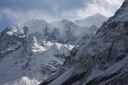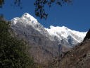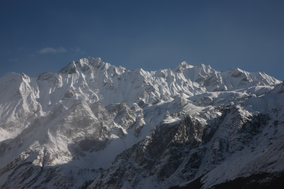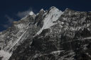 左、LangtangU(6596m) 中央、Langtang Lirung(7227m) ヒマラヤ襞に映えるGanchenpo(6387m)