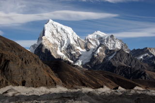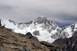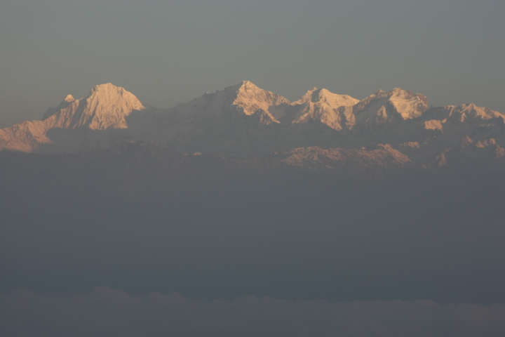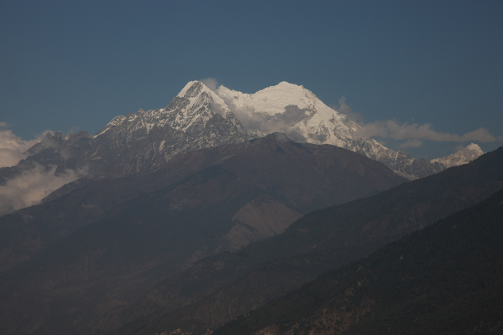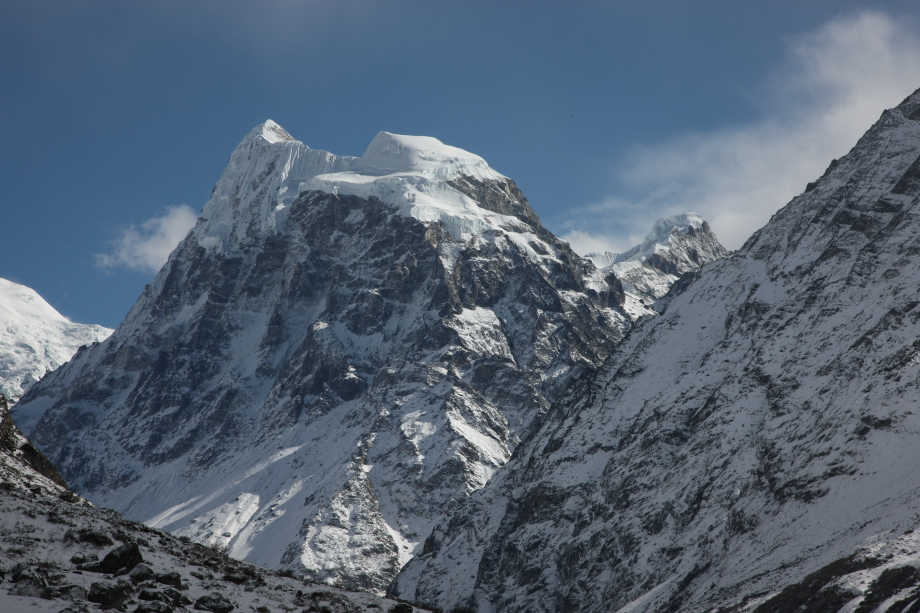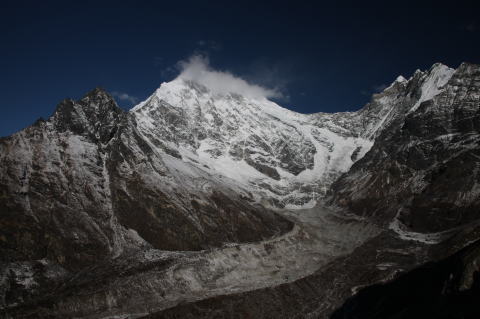 多少雲がかかりなかなか全貌を見せてはくれない。南にナヤ・カンガ5848m、ボンゲン・ドブク5930m、遥か西にはLangtangUが雲間に見え