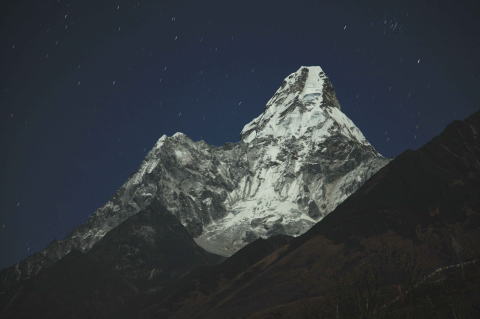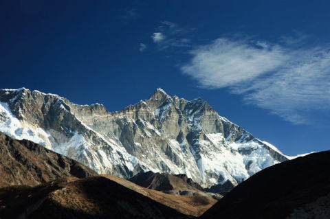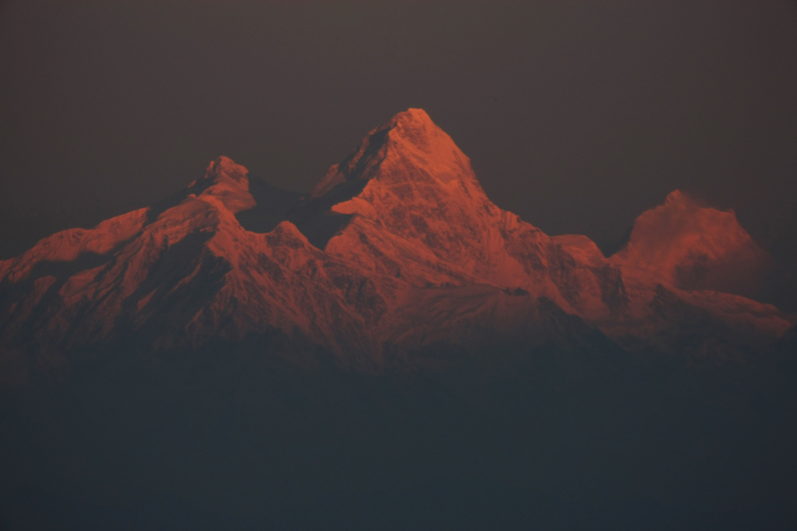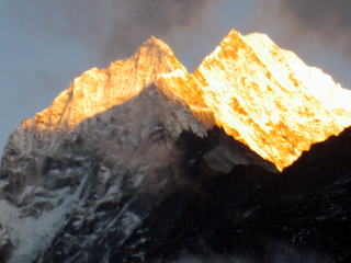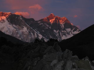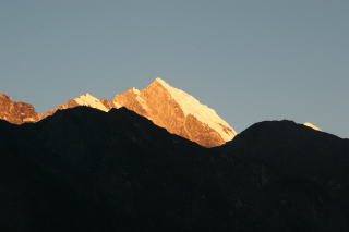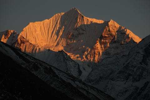 タウツエの南側からクーンビラ(5761m) ローツエ(8516m)の夕日