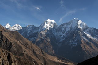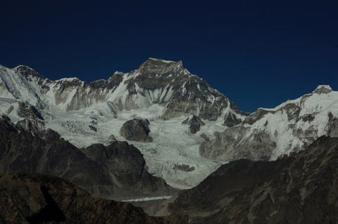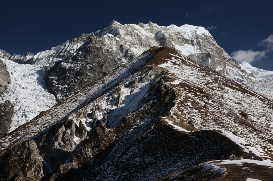 Peak 41(6648m)左端とカンテガ、タムセルク ドーレと中央がPhari Lapche(6075m)
