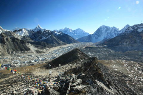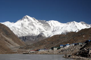 中央チョー・オユ(8201m)、左ゴーキョ・ピーク ギャチュンカン(7922m)