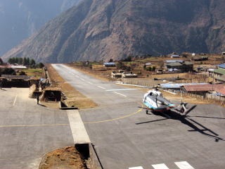 7時に目の前の飛行場でCheck Inするが待つことにはなれたが10時55分にようやく離陸、200mくらいの滑走路を谷底に落ちるように飛んだところで全員が拍手をする。それくらい怖いところでホット胸をなでる。