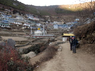 クムジュン村で小休止してからシャンボチェの見晴らし台(夢の楽園)で最後のヒマラヤ写真を撮り、ナムチェバザールまで戻ってきた。