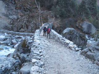 昨日のルートをシェルパとポーター3人で下りる。プンキタンガで橋を渡りEvergreen Guest Hauseに12時少し前に到着し、午後は一人静かに休養をとる。4000mから800m下り行動中にすでに高度障害の影響はなくなり体調は完全に回復していた。この繰り返しがヒマラヤの高所順化だというこを肌で体験した。夕刻近くにキッチンでロッジのスッタッフと手話状態の会話で心温まるひと時が翌日からの活力になった。夕食にシェルパの携帯食のヤクのハム肉と持参の餅を焼きスタミナをつけて長い眠りに就いた。
