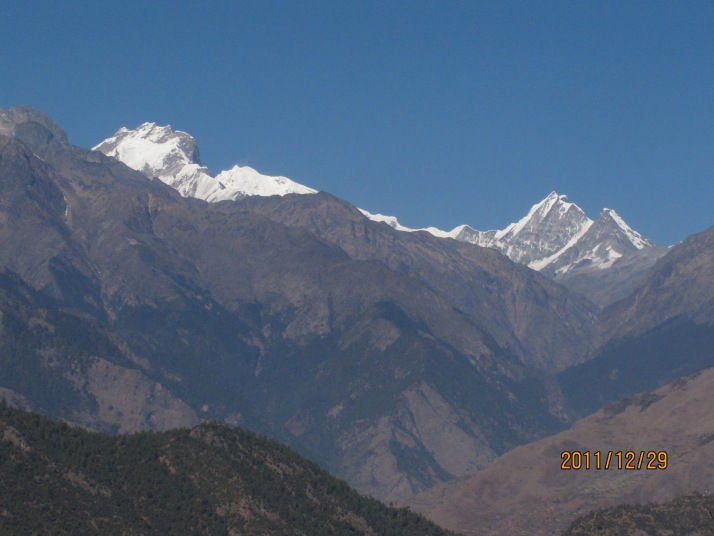 中央 ガネッシュ・ヒマール(7406m) 右 ランタンU(6596m)