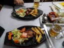 夕食 モモ、サラダ、マッカイパン、ビール、ロキシー