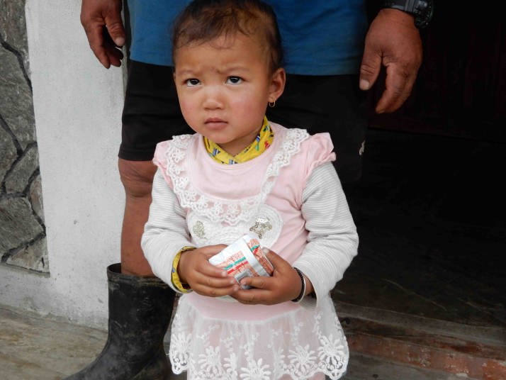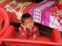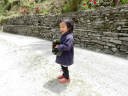 11:15 峠の手前の小さなバッテイで休憩、MilkTea。茶店の歩き始めたばかりの子供に梅キャンデーを上げたら喜んでお母さんに見せに行った。