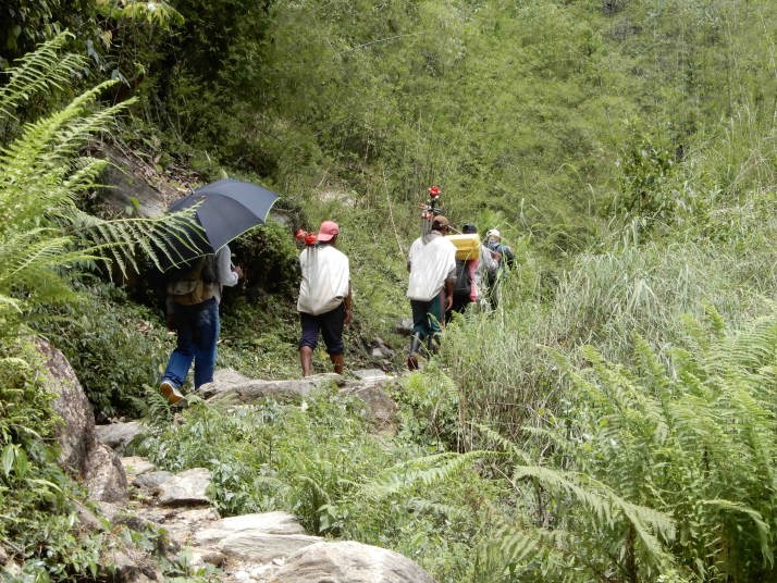 07:00‐09:00 JinuDanda 1760m‐09:50 Sumrung 1670m(Kimrong Khola)を渡った上