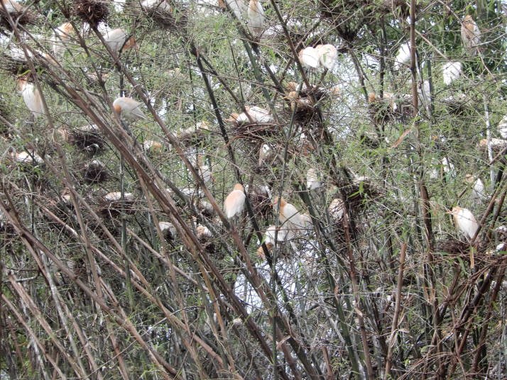 湖畔で記念撮影の風景も楽しそうに見えた。また近くの高い木の上では数えきれないほどの鷺が羽を休めていた。