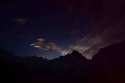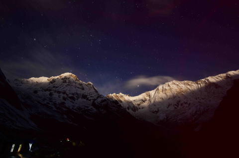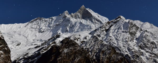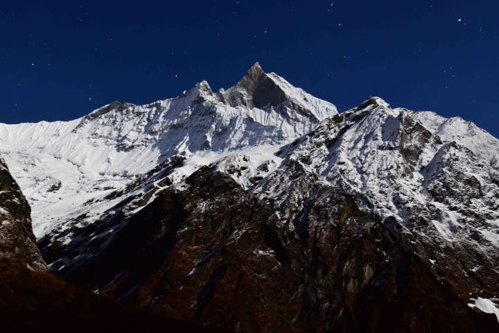 月光に浮かぶマチャプチャレ 月に照らされたアンナプルナ