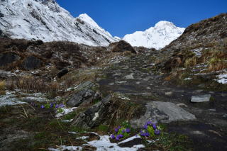 今日は一人で先に行き花の撮影をしながら次第にABCが近づいて小さな流れも氷が張り登山道は溶け始めてぐちゃぐちゃなので昨日降った
