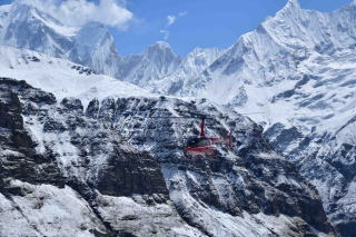 Tちゃんが到着するまで高台に行き氷河湖撮影や360度に見えるAnnapurna,Machhapuchhareの撮影をして待ち、時折やってくるヘリコプターの