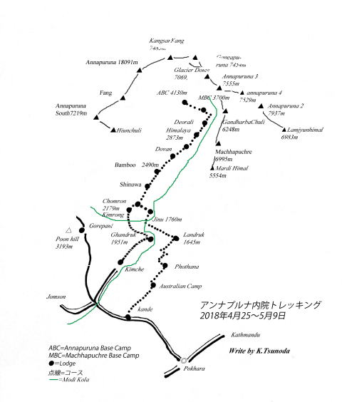 彼はこのままでは帰れるかどうかと心配していてChomrongあたりまで行けばヘリ要請してでも帰りたいといっていた。